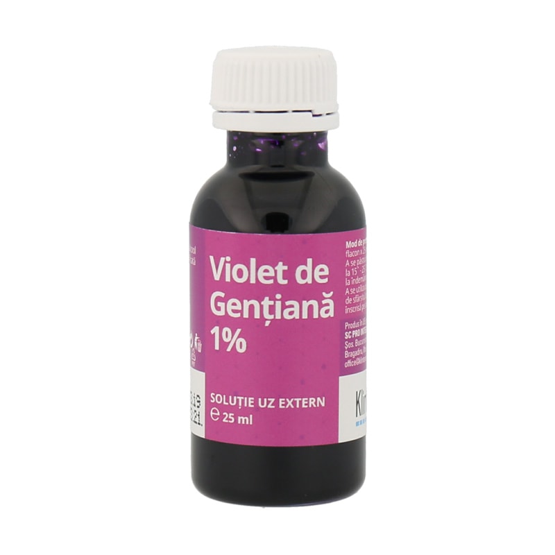 Composition: violet de gentiana 1%, alcool etilic 96° 10%, apa purificata q.s. ad. 100%.