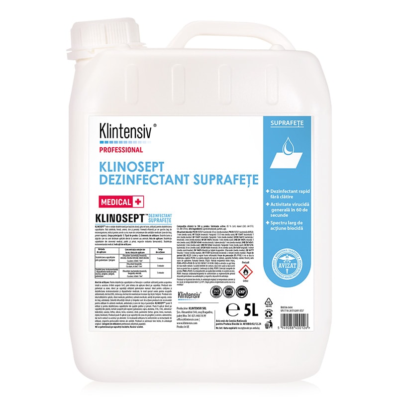 KLINOSEPT® – dezinfectant rapid pentru suprafete RTU este un produs gata preparat, conceput pentru dezinfectare rapida prin pulverizarea si stergerea suprafetelor, pieselor de mobilier si a instrumentelor utilizate in diverse domenii profesionale.
